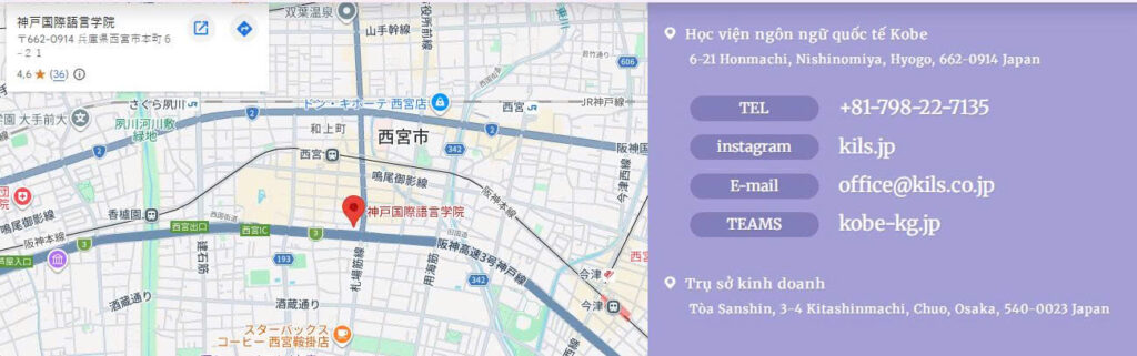 - Địa chỉ trường: 6-21 Honmachi, Nishinomiya, Hyogo 662-0914