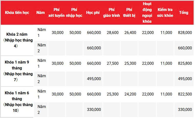 Lưu ý: Học phí có thể thay đổi tùy thuộc vào thời gian nhất định.