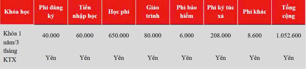 – Khóa học 1,5 năm (nhập học vào tháng 10)