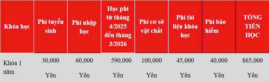 Lưu ý: Học phí có thể thay đổi tùy thuộc vào thời gian nhất định.